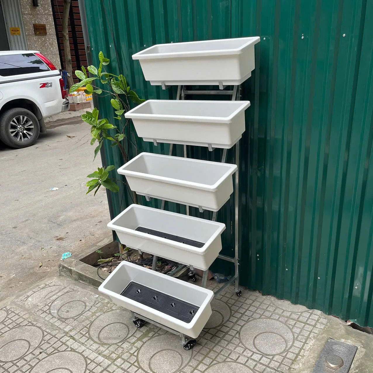 Thiết kế 5 tầng thông minh: Tăng diện tích trồng cây gấp nhiều lần so với đặt chậu rời.