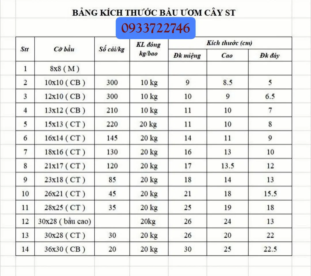 Bầu Ươm Cây Giống – Hàng Đẹp, Chất Liệu Bền, Nhiều Kích Thước