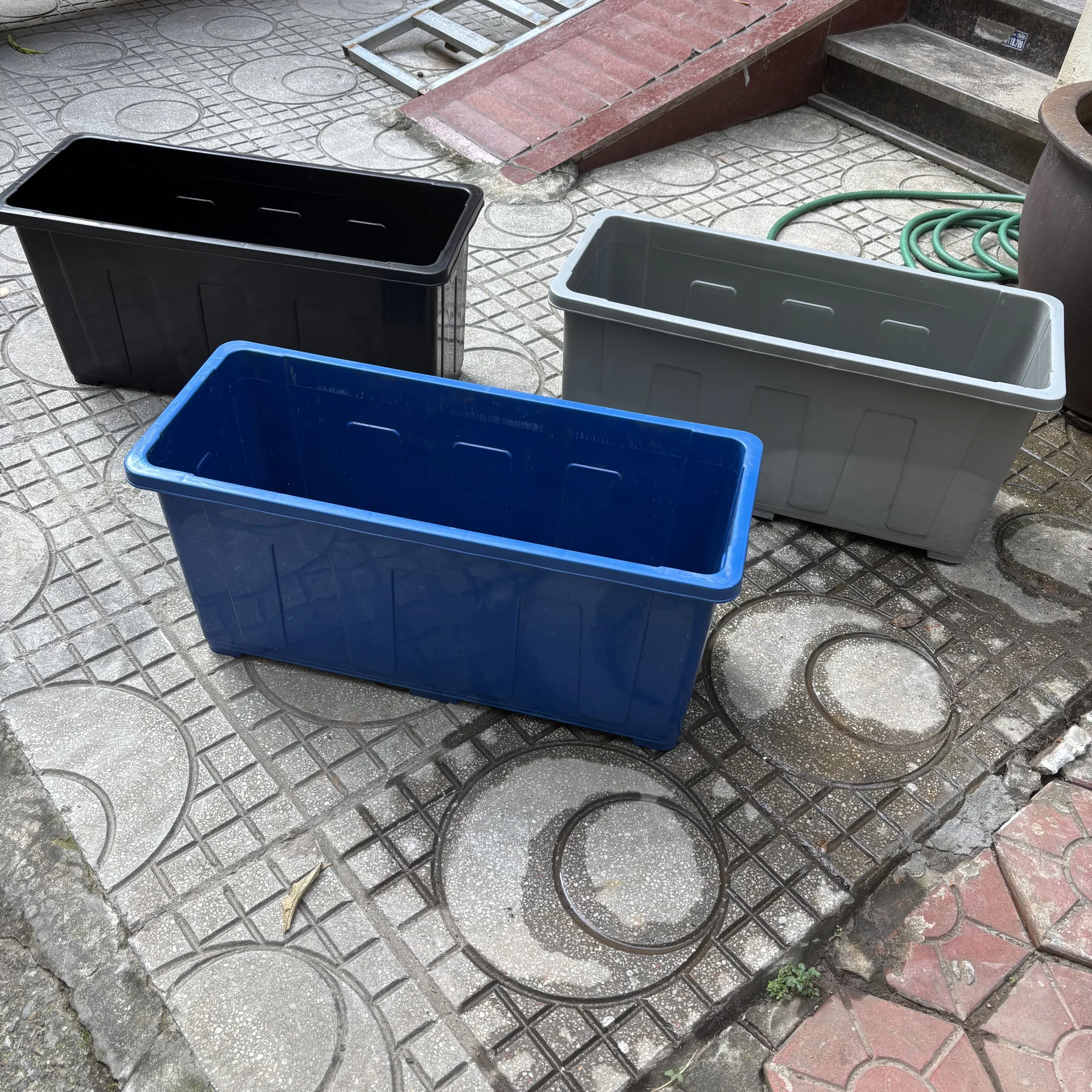 Chậu trồng cây chữ nhật lớn – Màu xanh, ghi, đen kích thước 64x26x30 cm